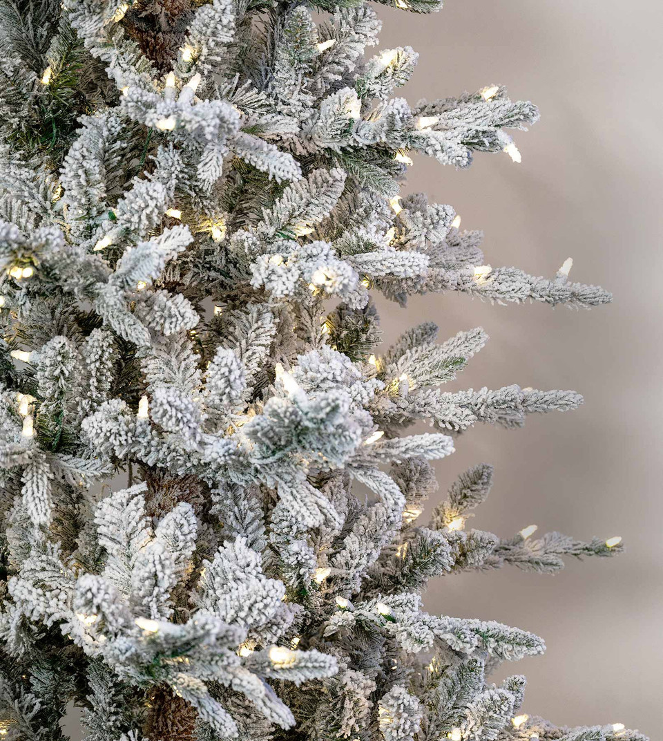 Each branch of the Flocked Appalachian Fir is carefully molded to replicate the layered structure of a natural snow-kissed fir tree. Hand-applied flocking creates the effect of freshly fallen snow, giving the tree a soft, enchanting appearance.