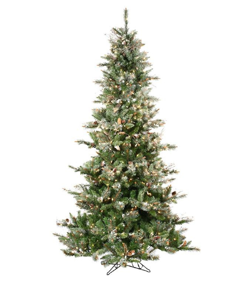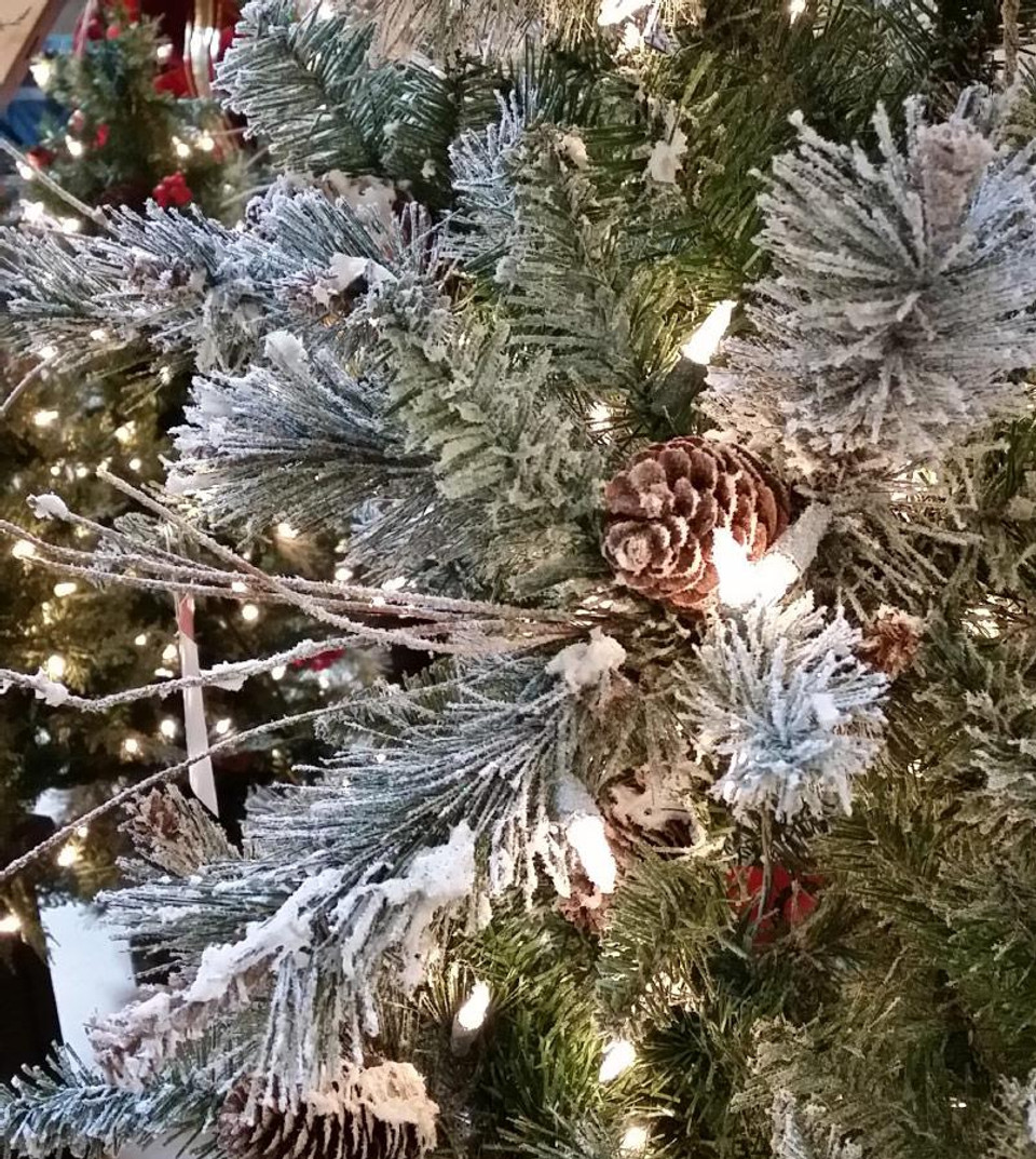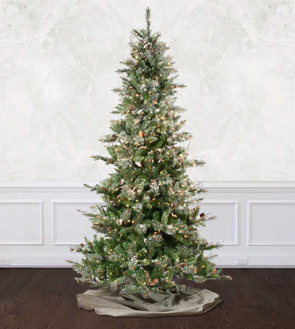 • Delicately frosted tips lightly adorned with glitter, fine wood sprigs, and real pine cones create a very authentic and gorgeous tree.  No additional decorations needed!