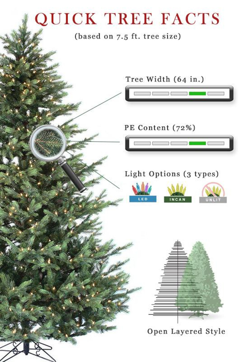 Each branch is carefully molded using TrueForm™ PE and PVC technology, ensuring a perfect blend of lifelike realism and long-lasting durability. The natural two-tone green hue mimics fresh winter fir needles, while the subtle shimmer of the branch tips catches holiday light beautifully — reminiscent of frosted morning dew on evergreen boughs.